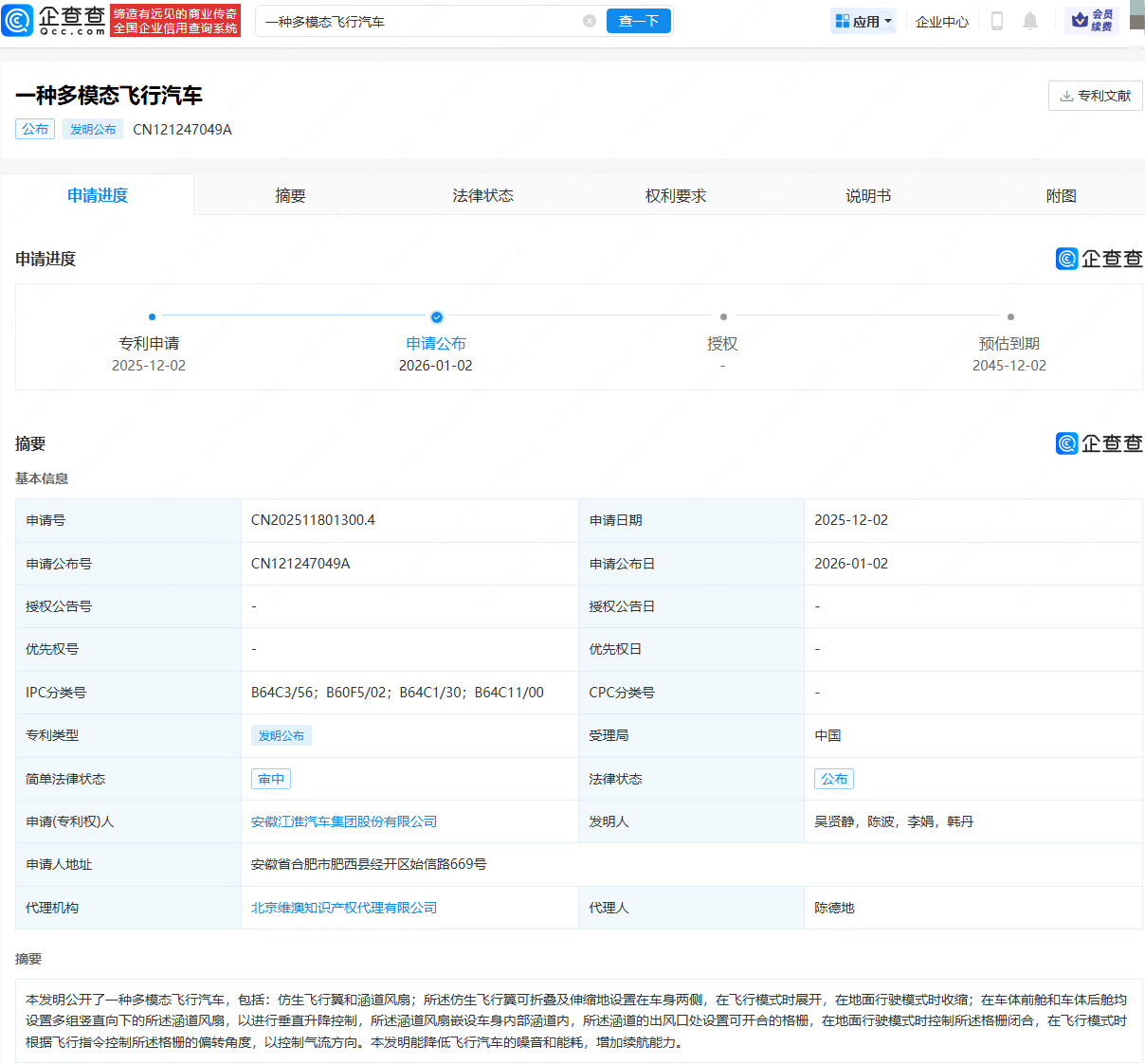 配资排行APP下载 江淮汽车公布飞行汽车相关专利